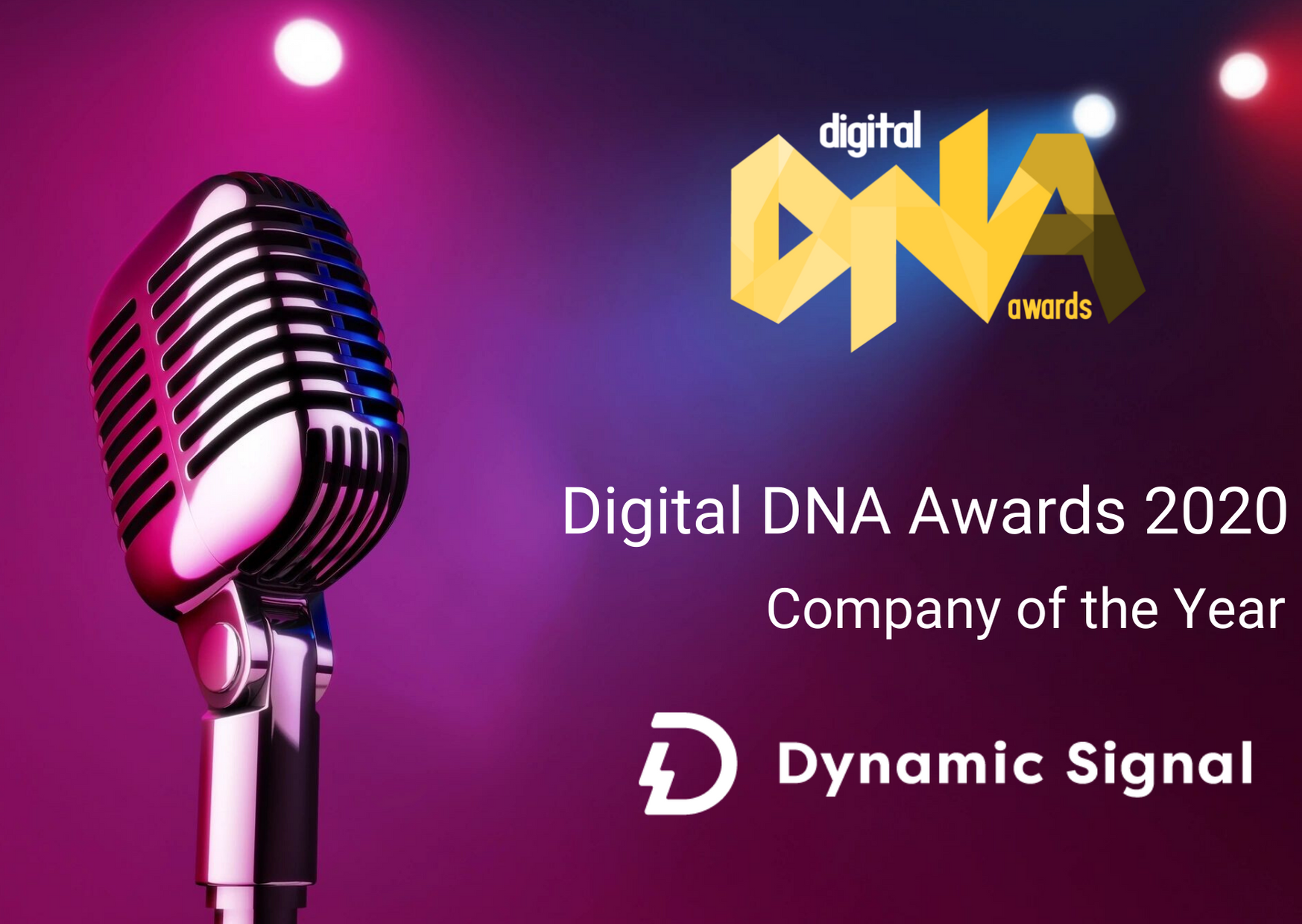 Delighted to be a finalist for Digital DNA Company of the Year 2020. We need your votes! To vote please tweet 'Congratulations to @Dynamic_Signal for being shortlisted for the @DigitalDNAHQ Company of the Year Award! You have our vote! #DDNAAWARDS2020 #DDNA2020 #DDNADYSI'